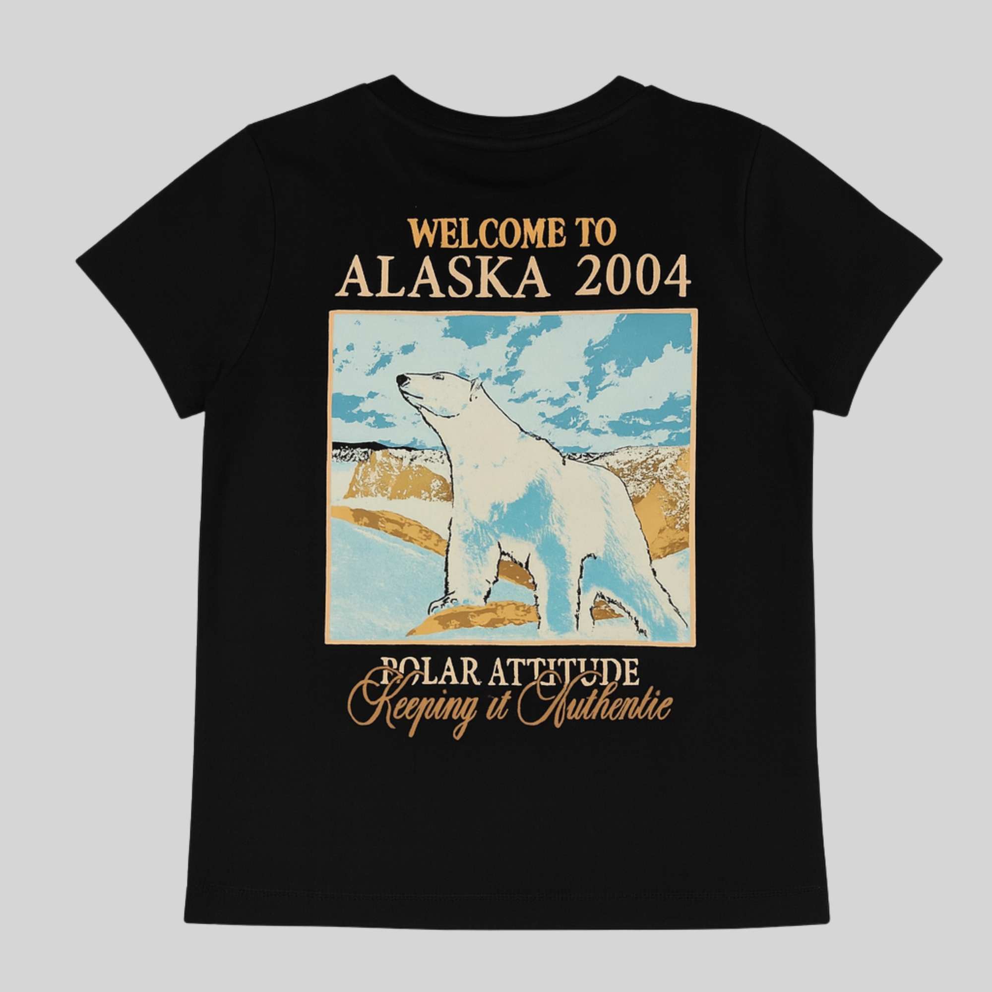 A cool travel-inspired tee with a bold polar bear print for little adventurers.
