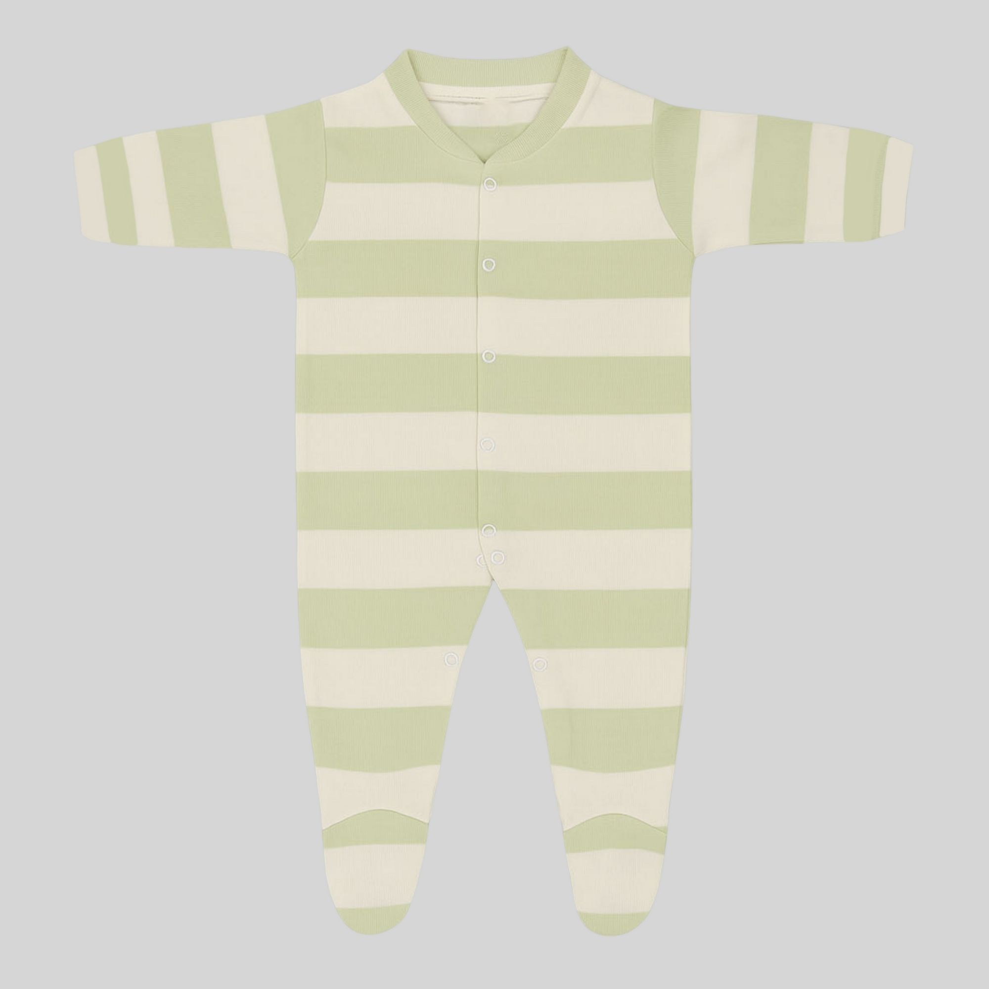 This adorable combo features two full-sleeved, footed cotton onesies – one in soothing green and cream stripes, and the other with a vibrant alphabet and animal print. Made from 100% cotton, they are soft, breathable, and gentle on your baby’s skin. The footed design keeps little toes warm, while snap button closures ensure easy dressing and diaper changes.