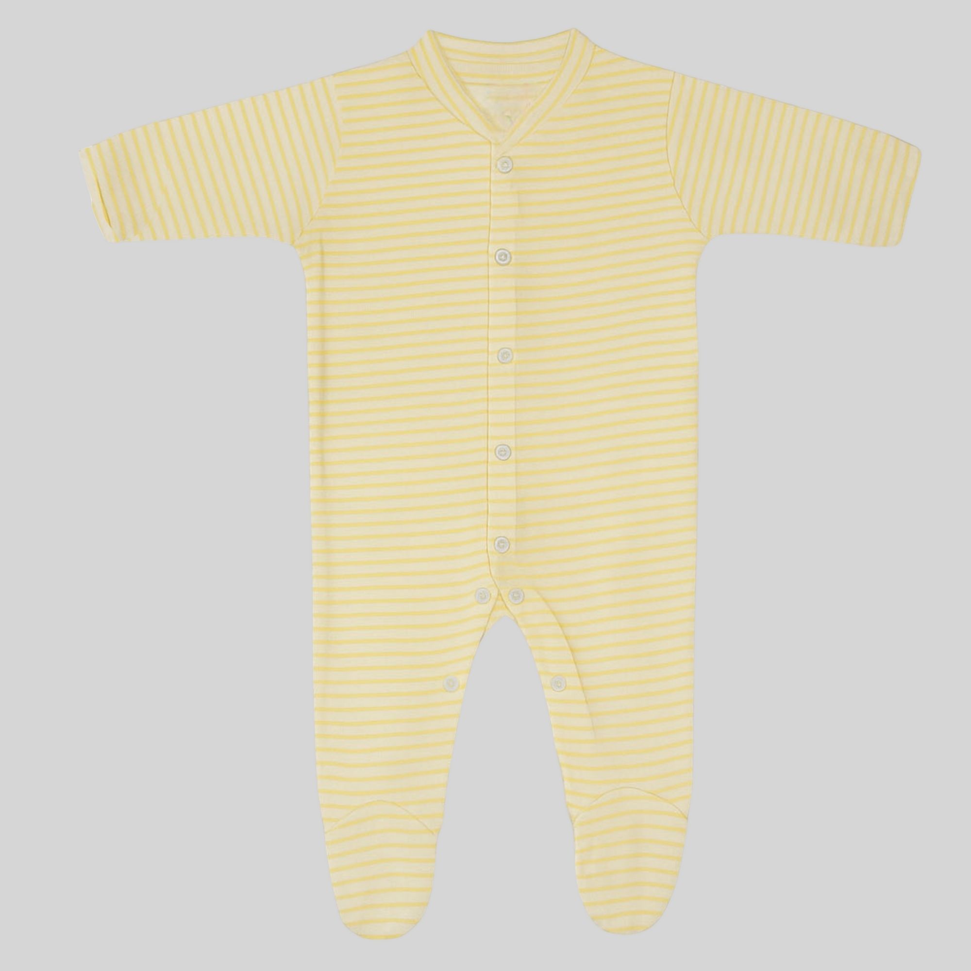 This pack includes a cheerful yellow striped onesie, a colorful alphabet print design, and a solid yellow style with a cute lion motif. Made from breathable cotton, each features a footed design and snap button closure for easy wear.
